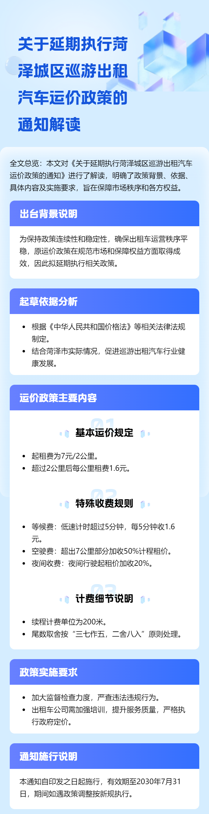 - 內容概述:菏澤市發展和改革委員會 菏澤市交通運輸局關于延期執行菏澤城區巡游出租汽車運價政策的通知